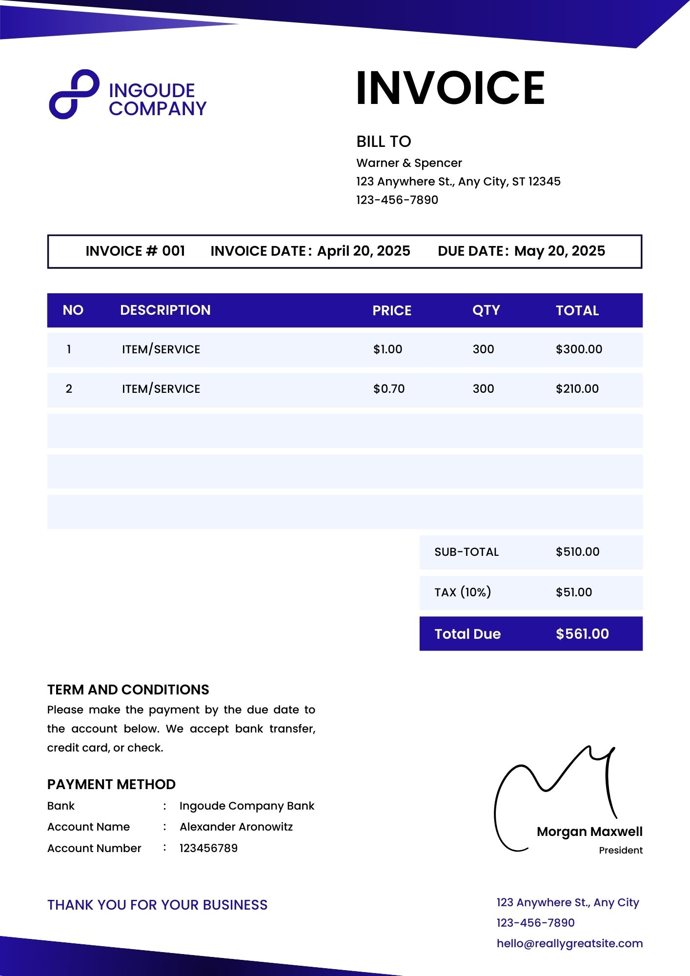 Professional invoices build confidence, encouraging prompt payments and repeat business.